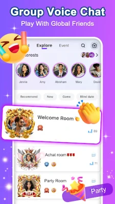 Achat ایک محفوظ وائس چیٹ ایپ ہے جو دنیا بھر کے صارفین کے لیے بنائی گئی ہے۔ لائیو پارٹیوں میں شامل ہوں اور نئے دوست بنائیں۔ محفوظ گفتگو اور عالمی رابطوں سے لطف اٹھائیں۔