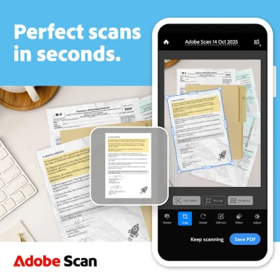 Adobe Scan آپ کے موبائل ڈیوائس کو ایک بے مثال دستاویزات کے سکینر اور پی ڈی ایف تخلیق کار میں بدل دیتا ہے۔ یہ ٹول آپ کے ہاتھ میں کاغذ کے ڈھیر کو صاف ستھری، پیشہ ورانہ ڈیجیٹل فائلوں میں تبدیل کرنے کی طاقت دیتا ہے۔ خمیدہ یا مائل صفحات کو خود بخود سیدھا کرنے کی صلاحیت کے ساتھ، آپ کی سکین شدہ دستاویزات ہمیشہ باوقار نظر آئیں گی، بغیر کسی اضافی محنت کے۔ چاہے وہ رسیدیں ہوں، نوٹس، شناختی کارڈز، یا کاروباری کارڈز، Adobe Scan ہر چیز کو قابل اعتماد ڈیجیٹل شکل میں ڈھالتا ہے تاکہ آپ کے کام اور ذاتی دستاویزات ہمیشہ منظم رہیں۔
