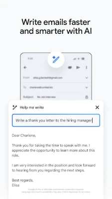 گوگل ورک اسپیس کے حصے کے طور پر، جیمیل ٹیموں اور کاروباروں کے لیے پیداواری صلاحیت کو ایک نئی سطح پر لے جاتا ہے۔ پریمیم AI اور جیمنی کی تازہ ترین خصوصیات کو جیمیل میں مربوط کیا گیا ہے تاکہ آپ کی ٹیم کی کارکردگی کو بڑھایا جا سکے۔ جیمنی ایپ، نوٹ بک ایل ایم، اور جیمیل، ڈاکس، شیٹس جیسے ٹولز میں جیمنی کے ساتھ مل کر، آپ حقیقی وقت میں، کسی بھی ڈیوائس سے باہمی تعاون کر سکتے ہیں، ہمیشہ اپ ڈیٹ رہنے والے ٹولز کا فائدہ اٹھا سکتے ہیں۔ گوگل میٹ یا چیٹ کے ذریعے ساتھیوں سے جڑیں، گوگل کیلنڈر میں دعوتیں بھیجیں، اور جیمیل سے باہر نکلے بغیر اپنی ٹاسک لسٹ میں کارروائیاں شامل کریں۔ AI سے چلنے والے حفاظتی اقدامات، انٹرپرائز-گریڈ سیکیورٹی، اور گوگل کے سیکیورٹی-بائی-ڈیزائن کلاؤڈ انفراسٹرکچر کے ساتھ، جیمیل آپ کے کاروباری ڈیٹا کو محفوظ، رازدارانہ اور معیارات کے مطابق رکھتا ہے، جو کاروبار کے لیے سب سے محفوظ ای میل سروس ہے۔
