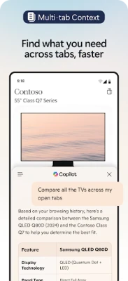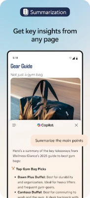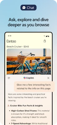 کوپائلٹ، مصنوعی ذہانت سے چلنے والا معاون، مائیکروسافٹ ایج میں ضم ہو کر آپ کی تلاش اور تخلیق کے طریقوں کو نئی شکل دیتا ہے۔ یہ آپ کے سوالات کا تیزی سے اور ذاتی نوعیت کے نتائج کے ساتھ جواب دیتا ہے۔ تصاویر اپ لوڈ کر کے بصری طور پر دریافت کریں، گہری بصیرت حاصل کریں، یا نئے خیالات کو جنم دیں۔ جی پی ٹی-5 کی جدید ترین ٹیکنالوجی سے لیس، کوپائلٹ ویب صفحات، پی ڈی ایف، اور ویڈیوز کا سیکنڈوں میں خلاصہ کر کے آپ کا وقت بچاتا ہے۔ آپ آواز کے ذریعے بھی کوپائلٹ سے بات چیت کر سکتے ہیں تاکہ خیالات کو پرکھیں، پیچیدہ سوالات کے حل تلاش کریں، یا کہانیوں اور اسکرپٹس کو ہاتھ لگائے بغیر لکھیں۔ مواد کی تخلیق میں یہ آپ کا ذاتی اے آئی رائٹر ہے، جو آپ کے خیالات کو بہترین مسودوں میں بدل دیتا ہے۔